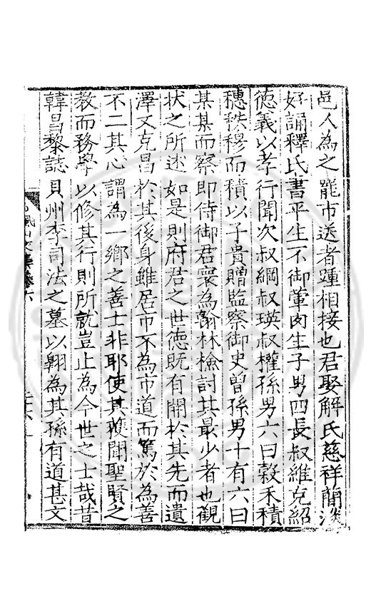 其容偉如其服襜如其業非儒其行則儒文之不足而質有餘利之不競而誼是趨吁嗟若人其韓康□淸之徒歟