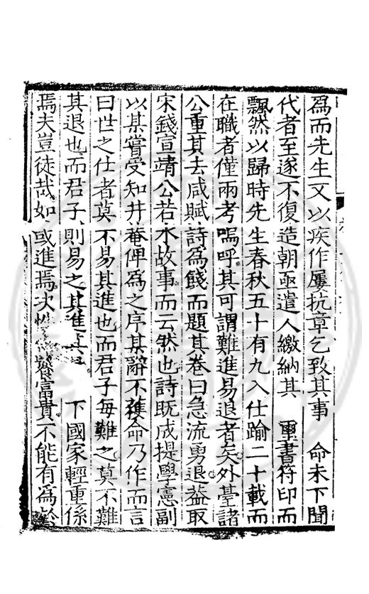 子祭酒秩滿三載連疏乞休始獲如志自是士大夫公論多上薦奏朝廷公道亦累加獎擢然先生高致竟弗肯起嗚呼贒哉士君子之仕行其義也精義入神其可不知幾乎先生仕不廢義而又能識幾焉此所以非人之可及也近接從子樸菴中丞乃以從弟井菴所輯先生遺稿屬祜序之晚生小子奚足以窺盛美萬一而以姓名獲綴先生下風其自爲幸豈不多耶夫聖賢之學中正平實初非求同於人亦非求異於人也程朱闡明正學之後傳習流衍迄今未乏而能眞繼程朱
