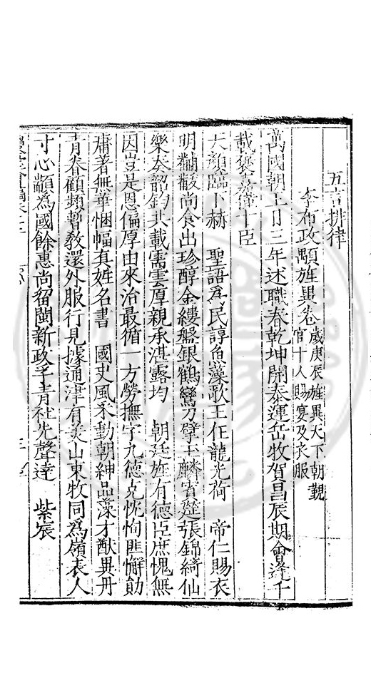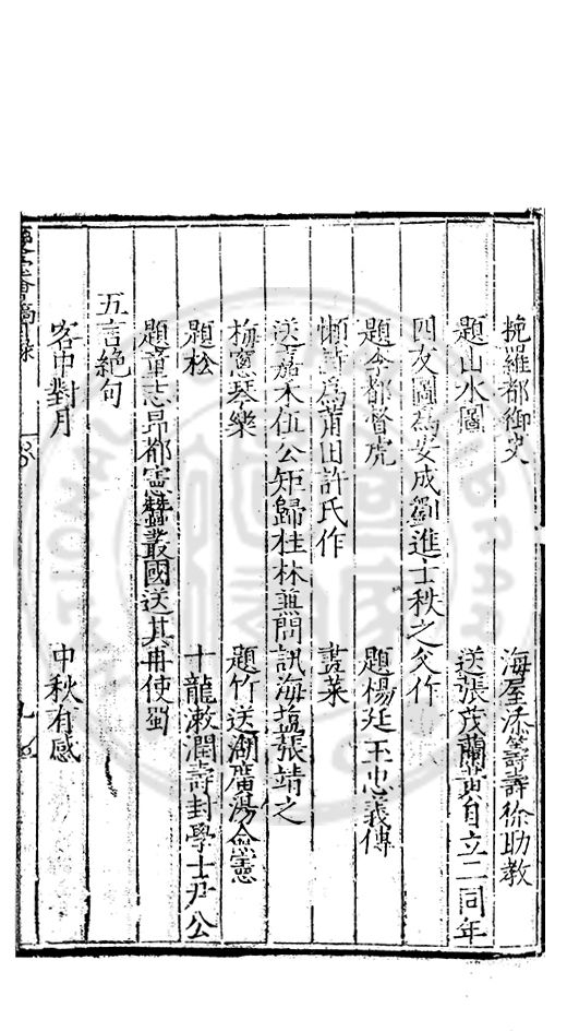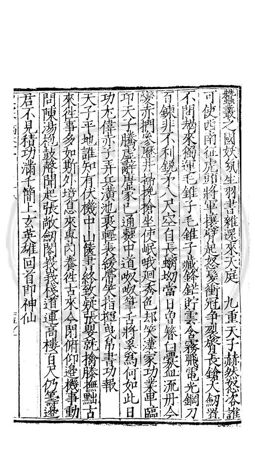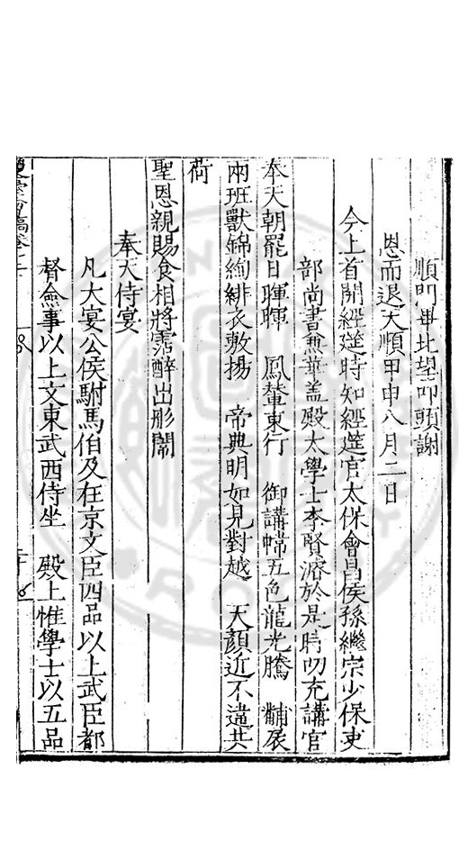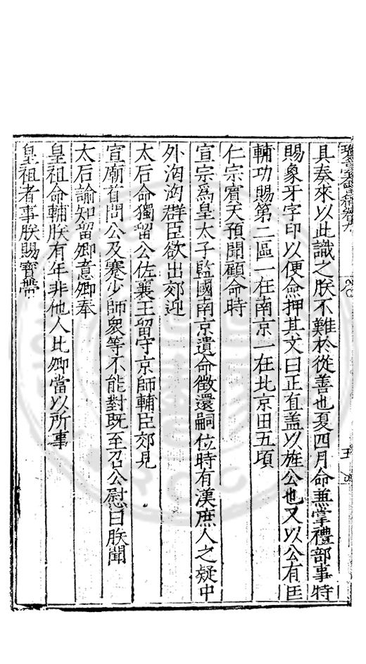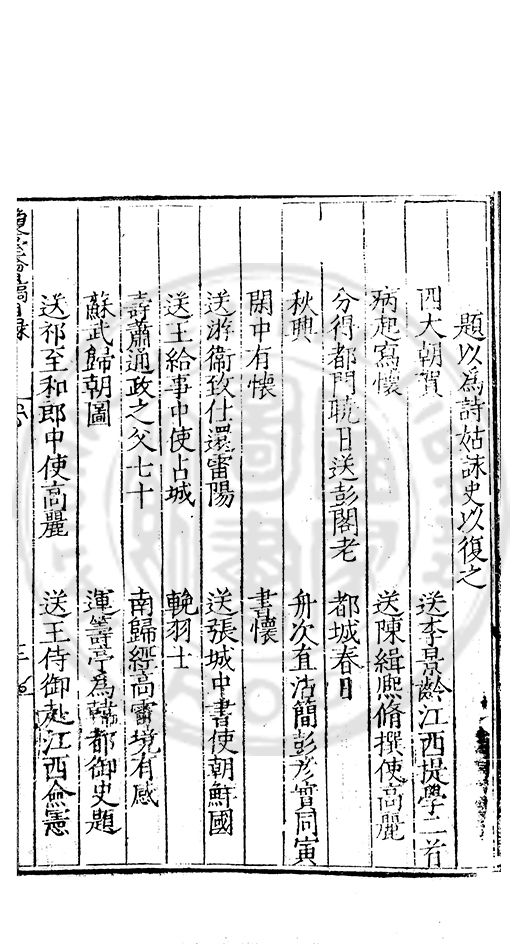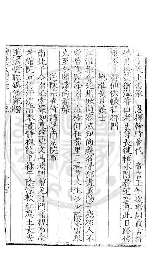 聖主登基禮百神 宗藩告祀遣親臣寶香含霧來天止玉節朋霞照漠濱禁□舊傳金孔雀宮袍新製繡麒麟臨分贈策丁寧語車盖亭前問故人