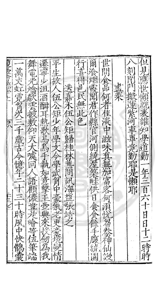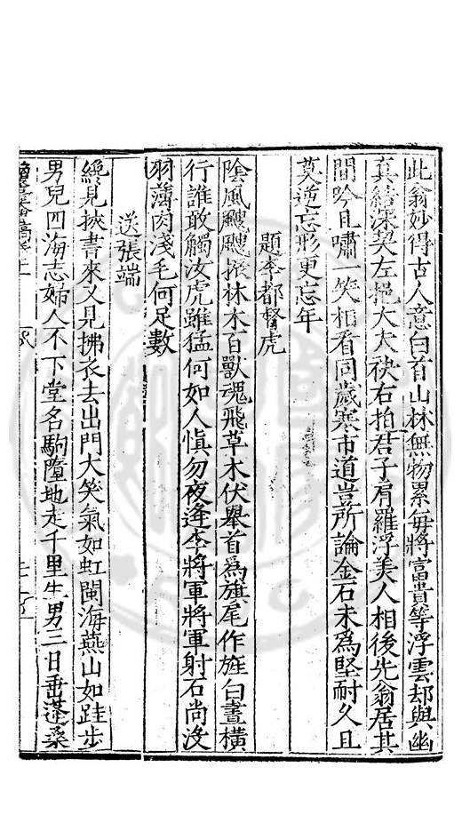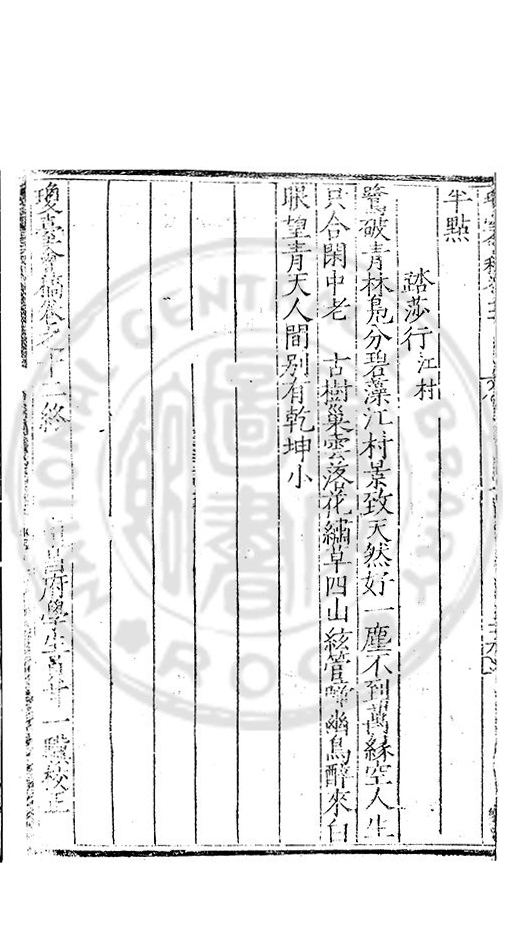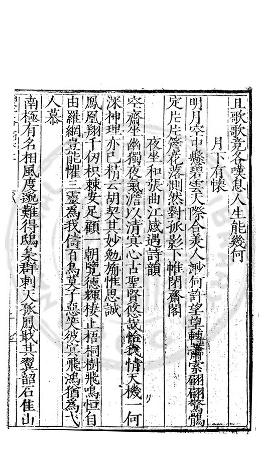 鷺破青林鳧分碧藻江材景致天然好一塵不到萬緣空人生只合閑中老 古樹巢雲落花繡草四山絃管啼幽烏醉來白眼望青天人間別有乾坤小