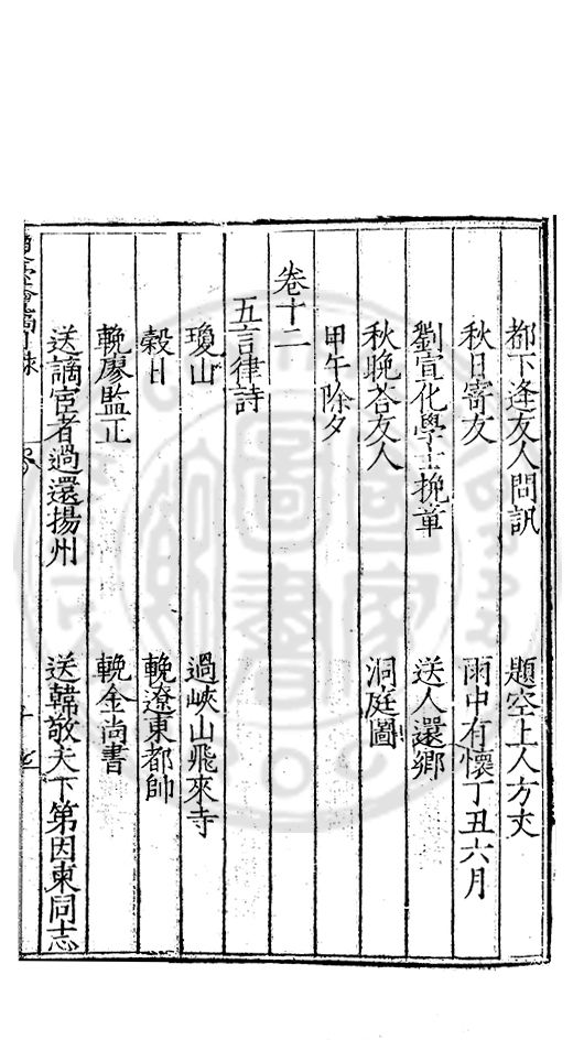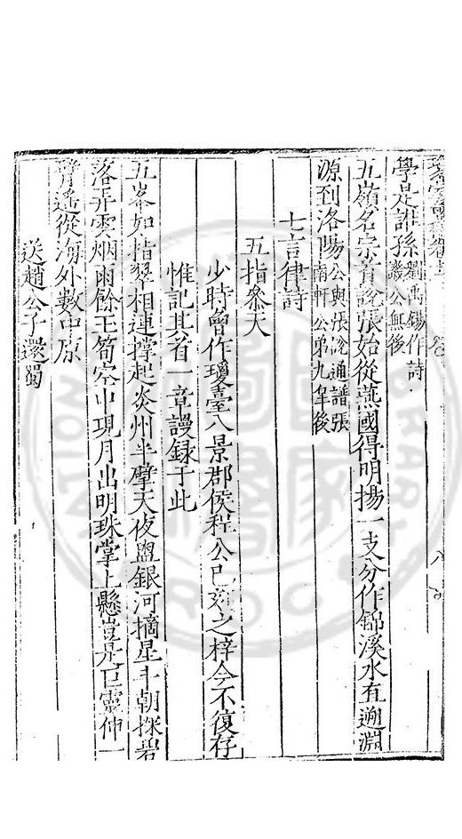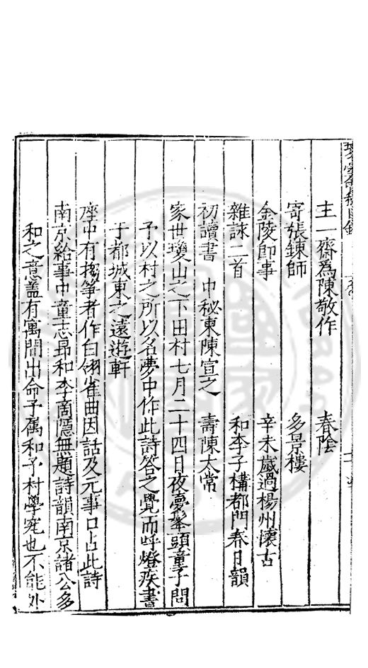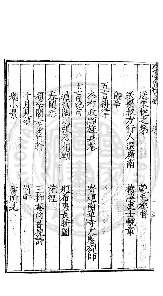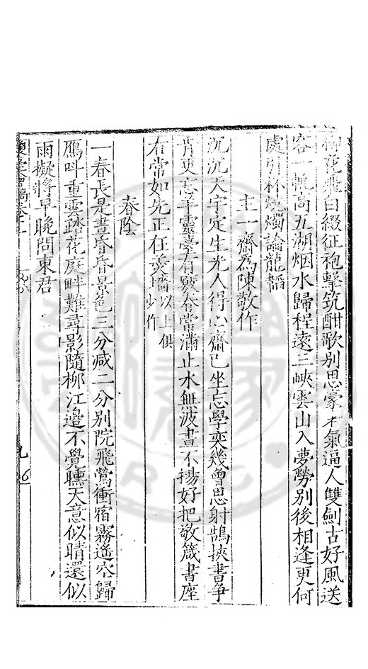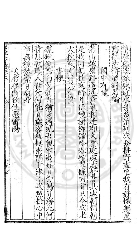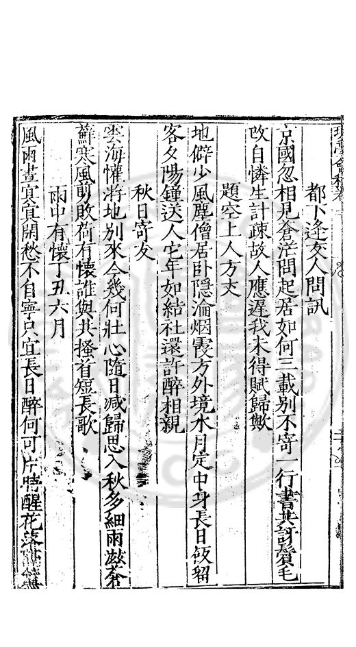 鳴玉朝來散紫宸鳳樓回首落花頻鵷鴻得路争先翥鸚鵡才高却累身直以疏慵招物議不趨權勢正因循只因宋王閑唇吻自保曾參不殺人謾說簡書惟物役猶將談笑出風塵眼前好惡那能定夣裡輸嬴總不真芳草有情皆礙馬江湖何處不通津長空淡淡飛鳥滅客舍青青栁色新東澗水流西澗水錦江春似曲江春長沙不乆留才子莫厭傷多酒入唇
