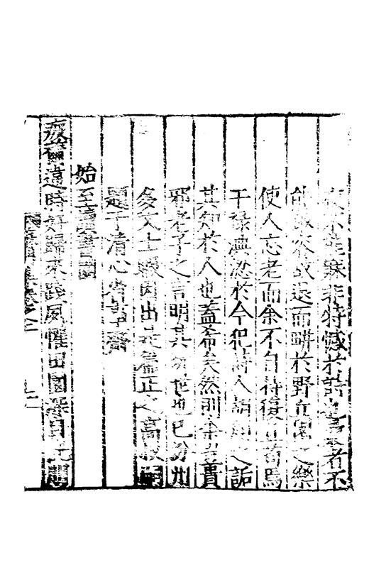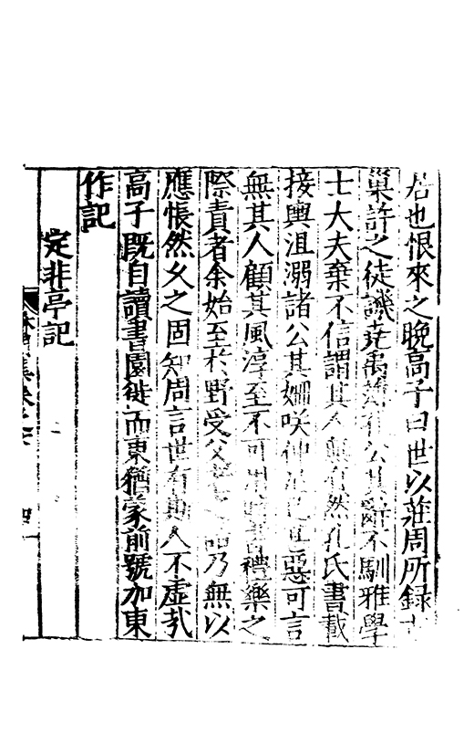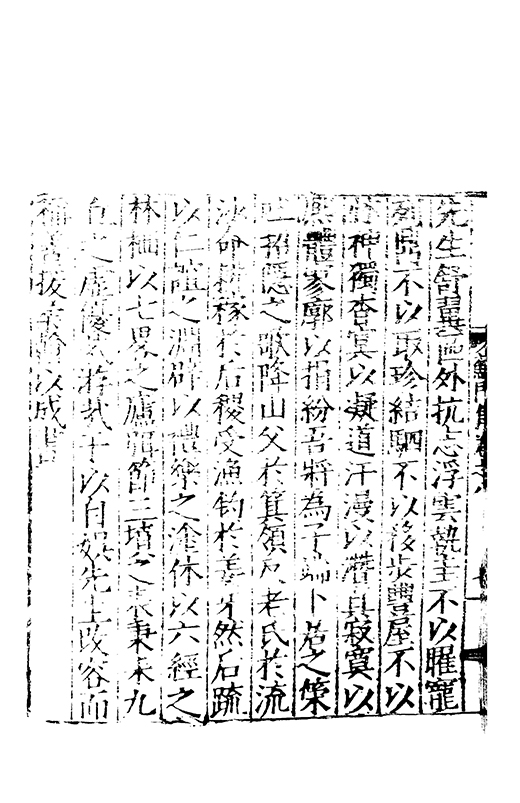 先生舒翼區外抗志浮雲執圭不以曜寵列鼎不以取珍結駟不以移歩豐屋不以怵神獨杳冥以凝道汗漫以濳眞寂寞以熈體寥廓以捐紛吾將為子端卜居之策吐招隠之歌降山父扵箕嶺反老氏扵流沙命耕稼于后稷受漁釣扵姜牙然后疏以仁誼之淵辟以禮樂之塗休以六經之林栖以七畧之廬弭節三墳之表秉耒九丘之虚優哉游哉于以自娛先生改容而稱善援柔翰以成書