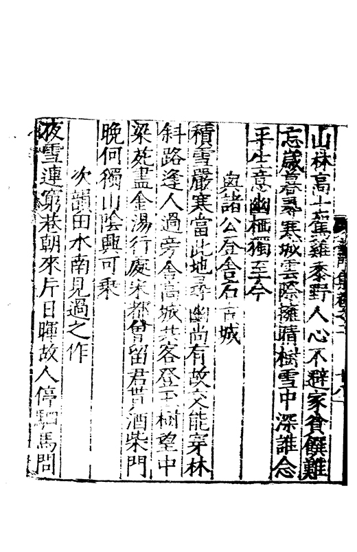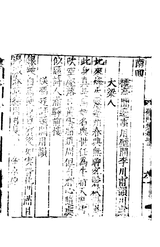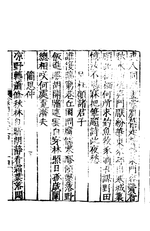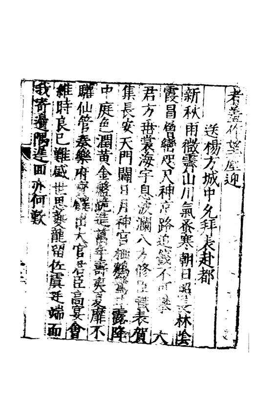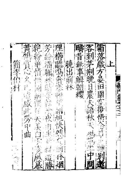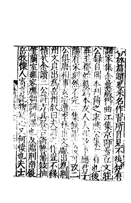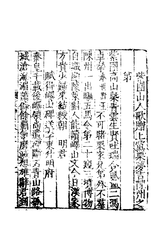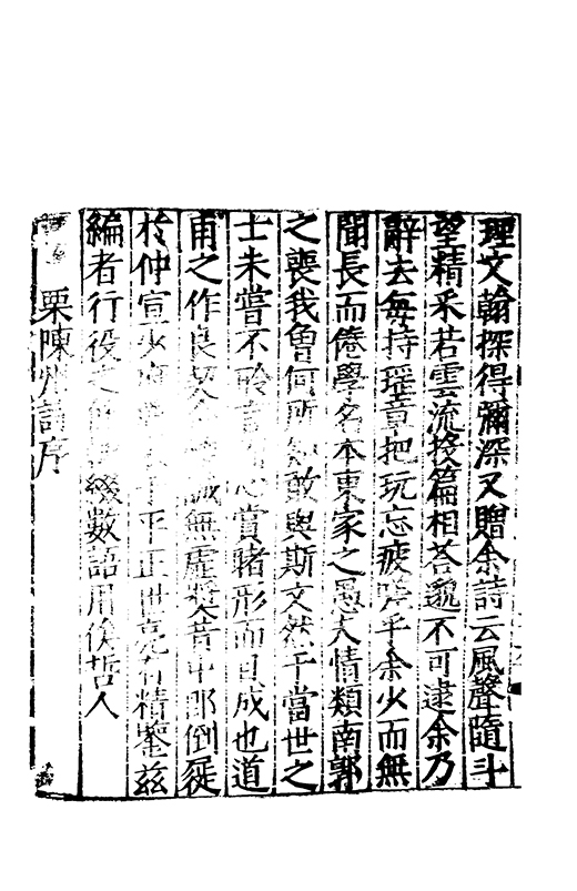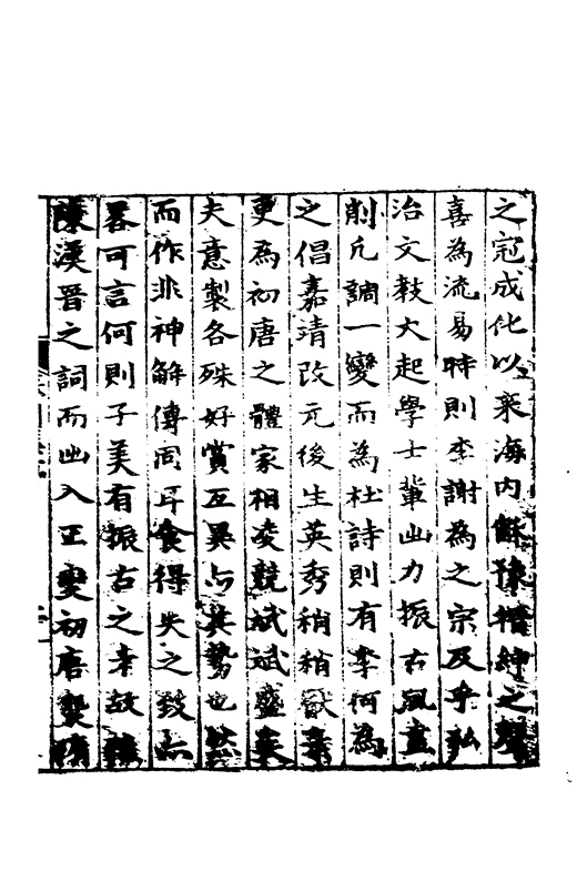 之冠成化以來海內酥豫楷紳之聲喜為流易時則李謝為之宗及乎弘治文教大起學士軰出力振古風畫削凢調一變而為杜詩則有李何為之倡嘉慶改元後生英秀稍稍猷棄更為初唐之體家相凌競斌斌盛矣夫意製各殊好賞互異與其勢也然而作非神解傳周耳食得失之致□畧可言何則子美有振右之者故□陳漢晉之詞而出入正變初唐□□