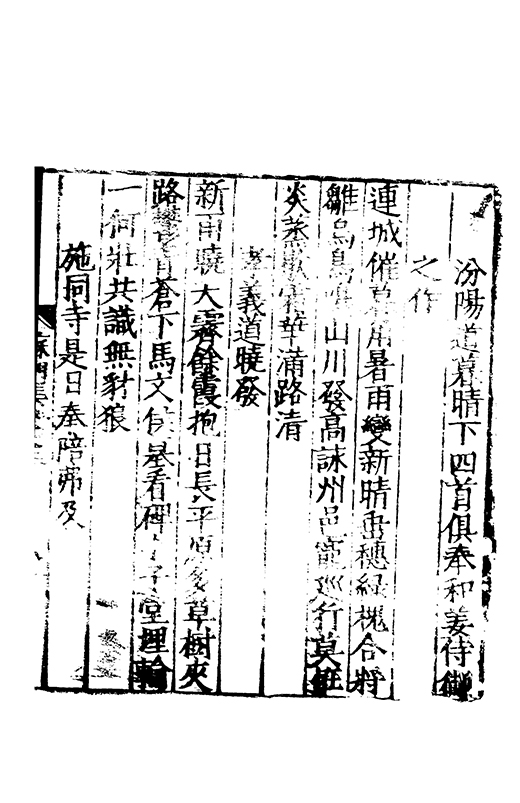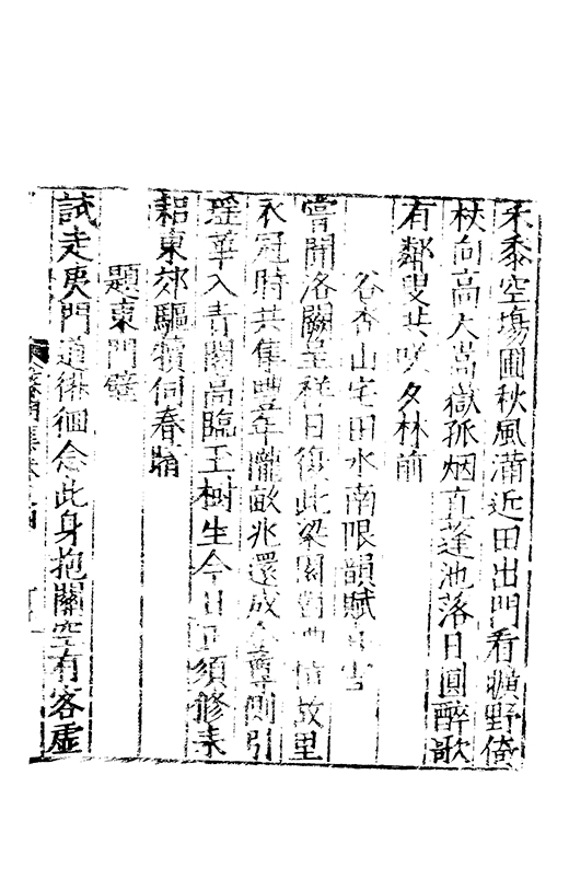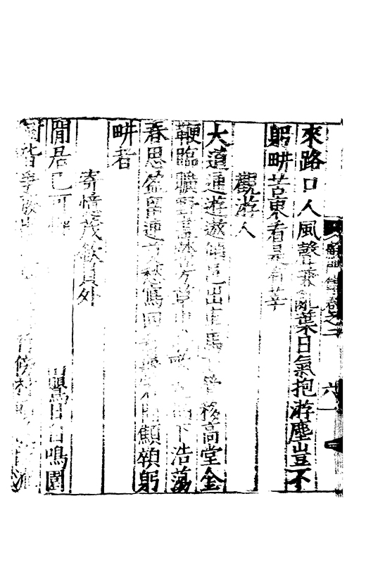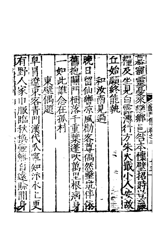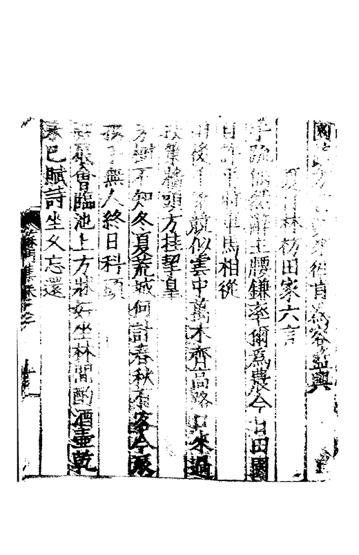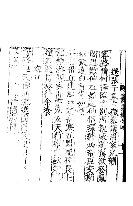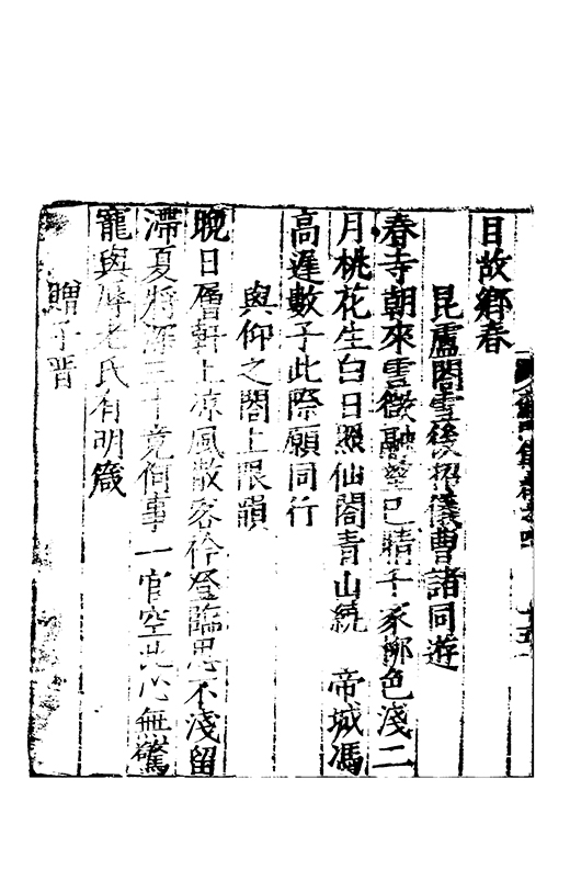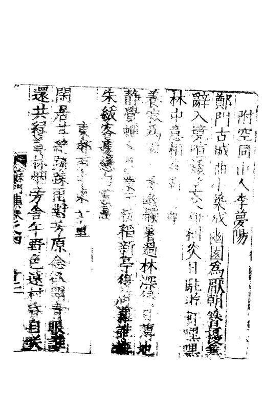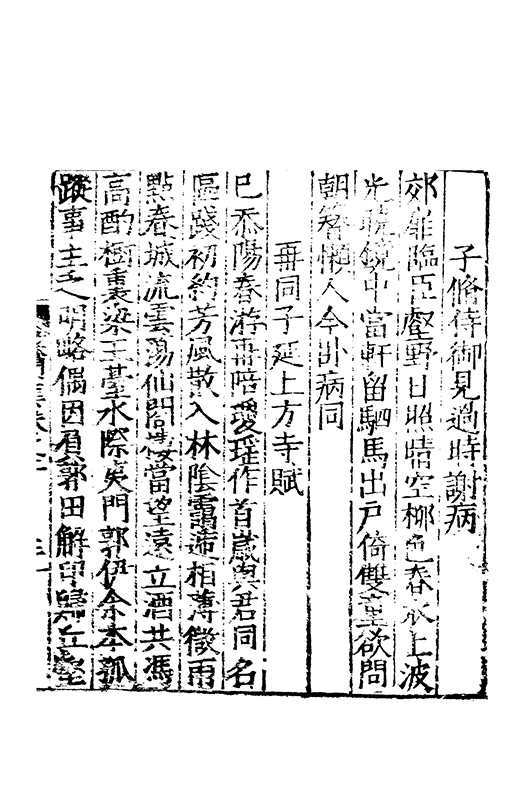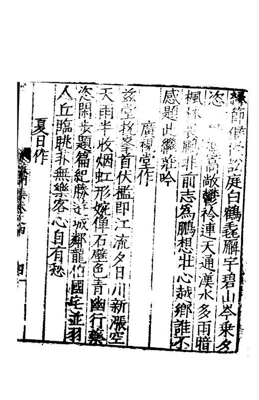 之冠成化以來海內酥豫楷紳之聲喜為流易時則李謝為之宗及乎弘治文教大起學士軰出力振古風畫削凢調一變而為杜詩則有李何為之倡嘉慶改元後生英秀稍稍猷棄更為初唐之體家相凌競斌斌盛矣夫意製各殊好賞互異與其勢也然而作非神解傳周耳食得失之致□畧可言何則子美有振右之者故□陳漢晉之詞而出入正變初唐□□
