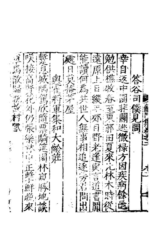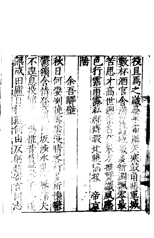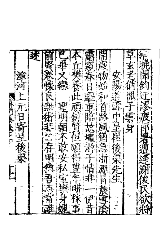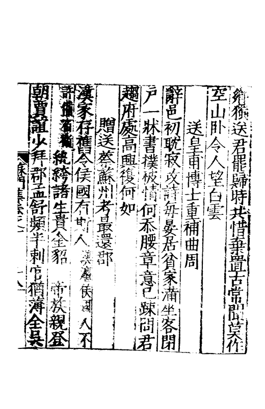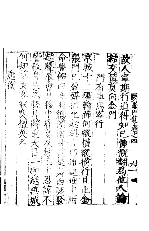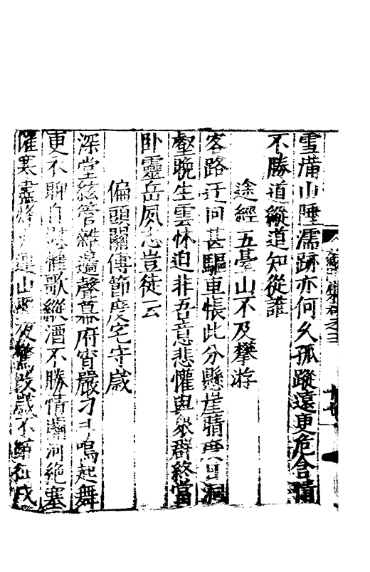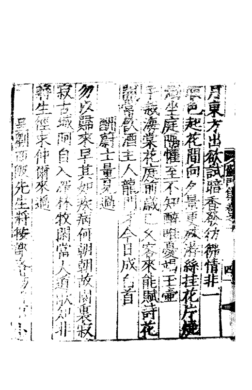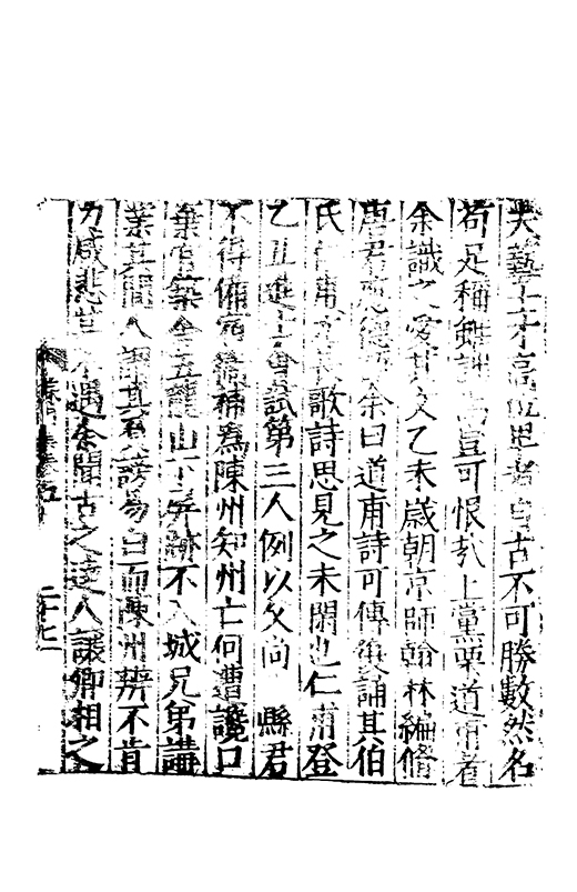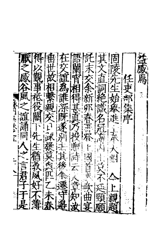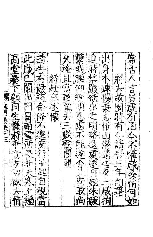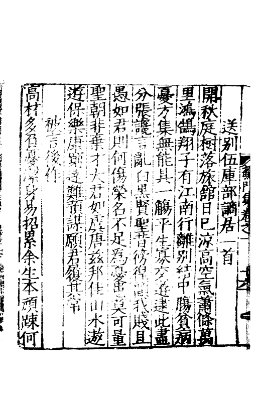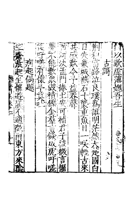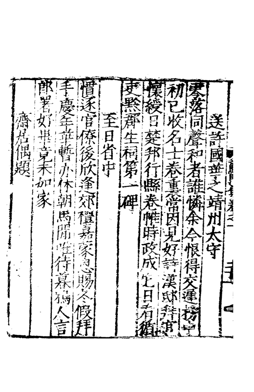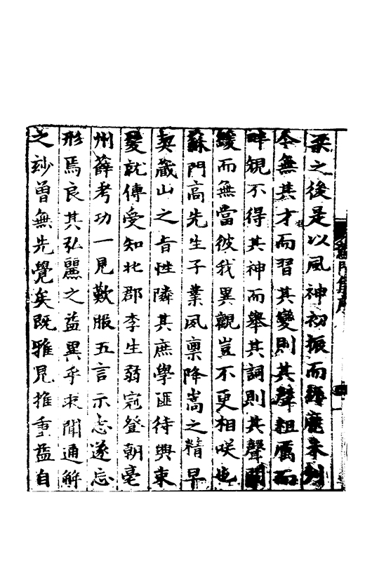 樂之後是以風神初振而□□未列今無其才而習其變則其聲粗厲而畔規不得其神而舉其詞則共聲□緩而無當彼我異觀豈不更相咲也蘇門高先生子業夙禀降嵩之精早契蔵山之旨性鄰其庶學匪待興束髮就傳受知北郡李生弱冠登朝毫州薛考功一見歎服五言示志遂忘形焉良其弘麗之益異乎求聞通解之紗曾無先覺矣既雅見推重益自