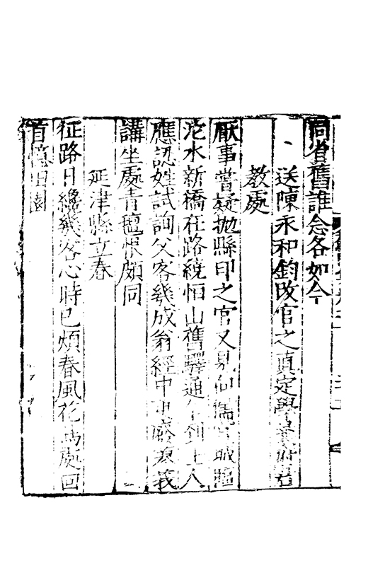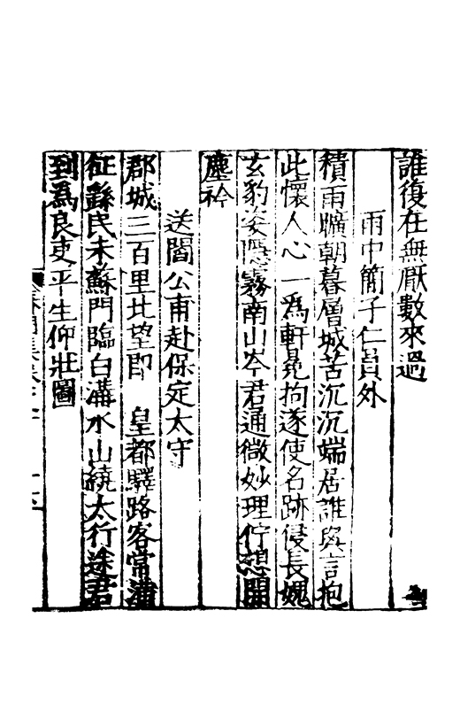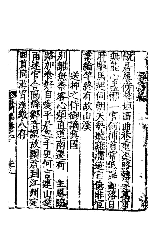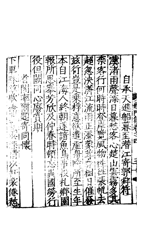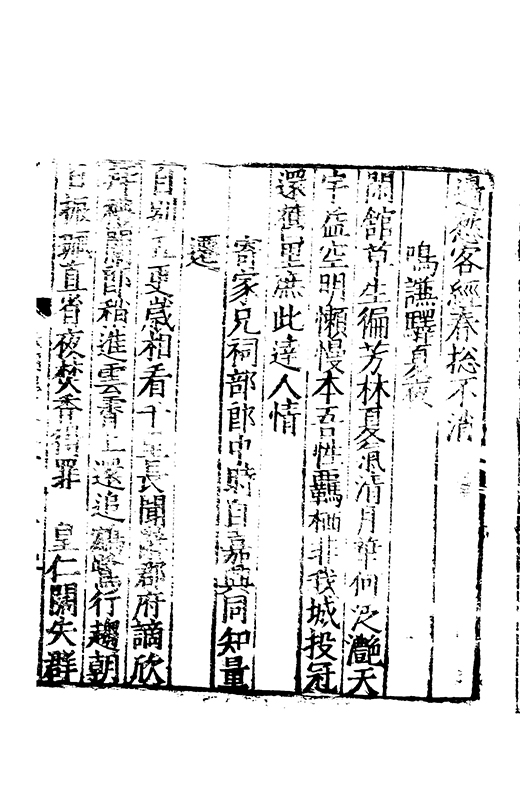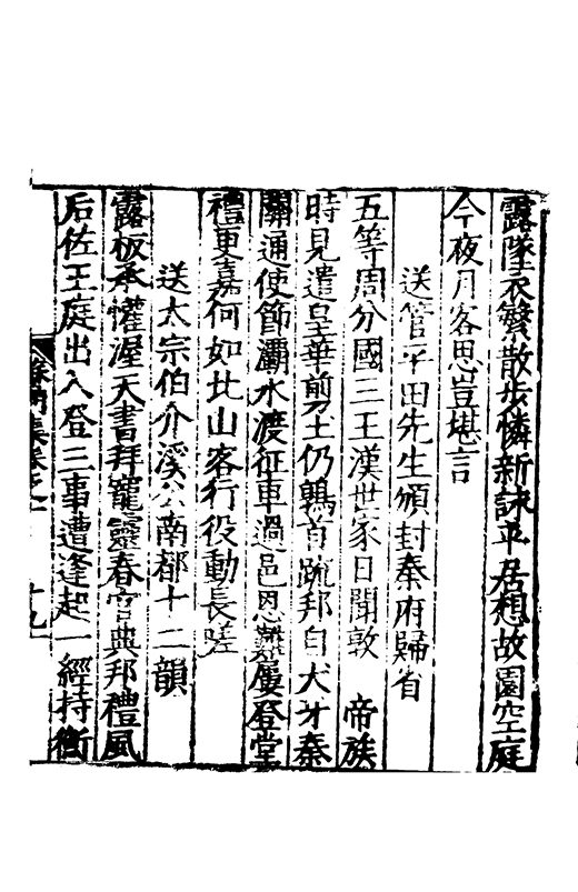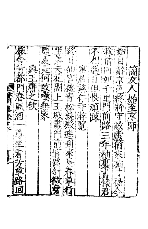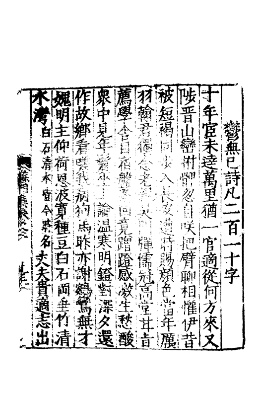 泝開元津夙心空十載長懐莫予親家本握剞劂文思效經綸恭承時嘉會中朝遘俊民興文方栖鳯著書凖獲麟置足述作塲發藻何彬彬心賞始一遇神交邁千春將登昔無岸言卜今有鄰分離忽迫兹辛苦何能陳晤對不可期咄嗟動我神本抱中孚爻俄傷明夷辰子其崇爾德攄光垂不泯