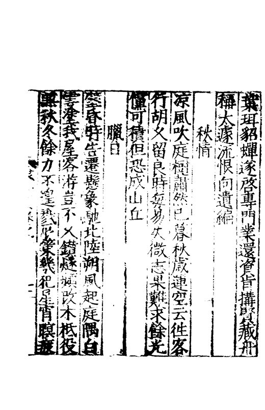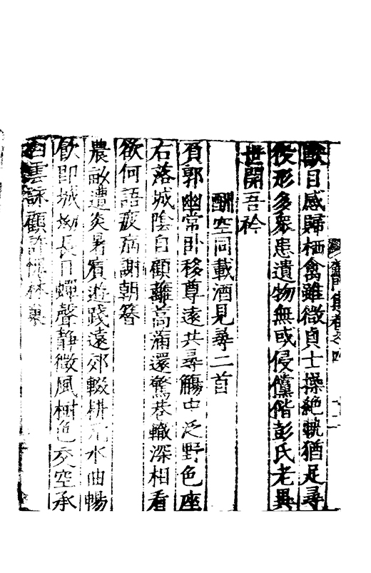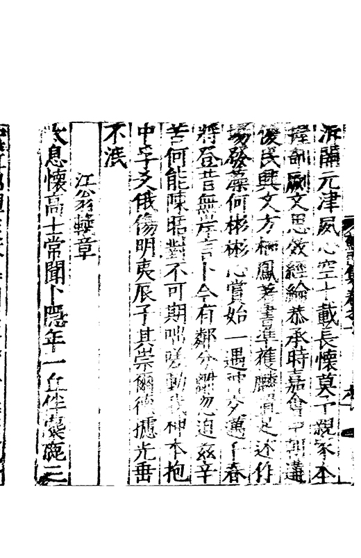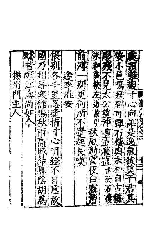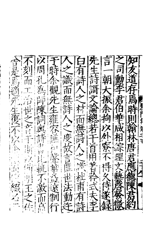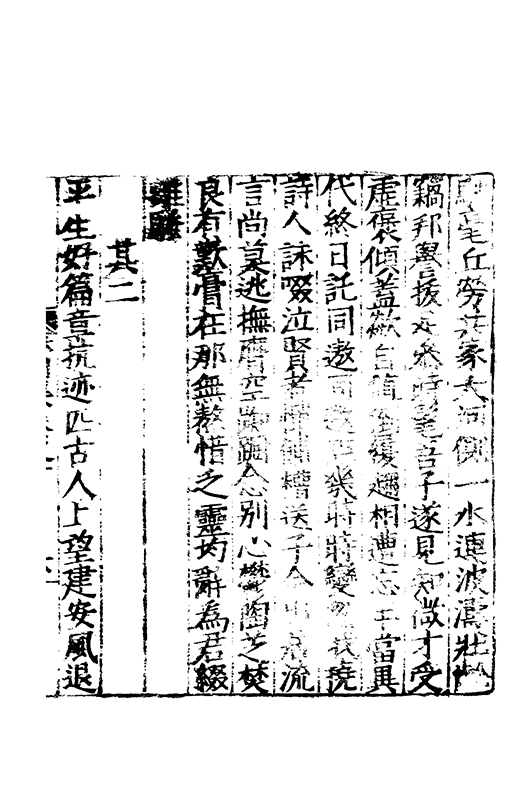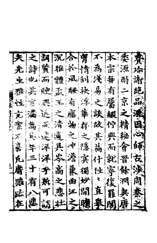 □□謝絕品汎因心師古涉周秦之委源酌二京之精秘會晉餘潤契唐本宗每有屬綴佇興而就寧復罷閣不為淺易之談故其萹什徃徃直舉胸情刮抉浮華存之隱冥獨妙閒曠合扵風騷有應物之冲澹兼曲江之沉雅體孟王之清適具岑高之悲壮詞質而腴興近而遠洋洋乎斯可謂之詩也其言滿萬其年三十有八悲夫先生雅性亢素不喜凢庸雖疏在