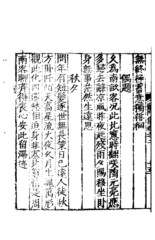 鵲繞瞻堦樹雞栖入省臺蒙烟仙署合懸月瑣闈開伏枕南天逺聽笳北地哀潘生應髪變秋興賦序司馬倍腸廻為木同先伐積薪異後來無言秋夜永申旦自徘徊