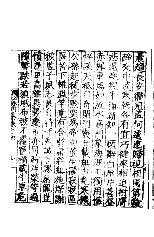 物睹聖人作權與道為伍騠駃驤首周流九土鳴鑾中律奮足中舞既踐康莊超忽囏阻鳳皇翺翔集扵蓬堵驢驘鶩鵝困不得所折足傷羽衆人肖之孰者可語