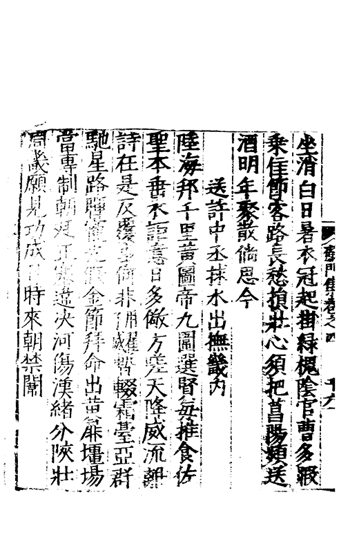 執象流玄化包虎息金革還憂十二郡選属備疆埸獨資樽俎士折衝展奇畫陽文辨赤土隂符訪黄石坐控負海險時蒐孟