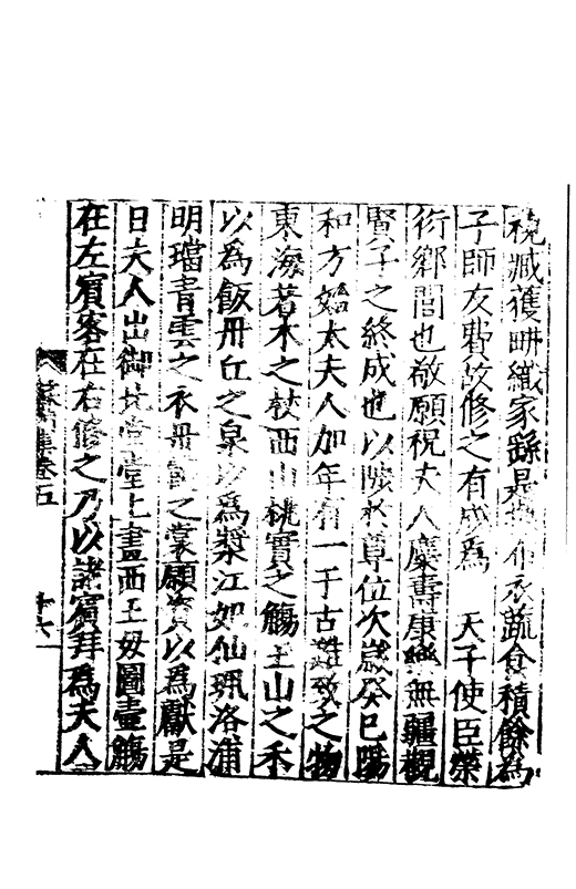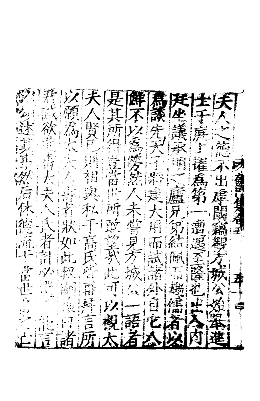 嗟夫人氏禀聖含貞奉嬪高族厥德純明乃誕元哲作邦國禎青瑣紫闥出入光榮鳳誥龍章昭受命服登于遐齡享兹景福帝曰惟良克鎮荊楚江漢咸平元哲來撫夫人從之如曹大家伏臘晨昏其樂孔嘉江魚橘柚鼎食崇加夫人曰歸公疏再上天子眷之錫我禄養河東不歸弗克以徃遂殂于荊邦人咸悲云我大夫大邦是綏夫人壽考匪悲所興夫人東轅不我俾寜