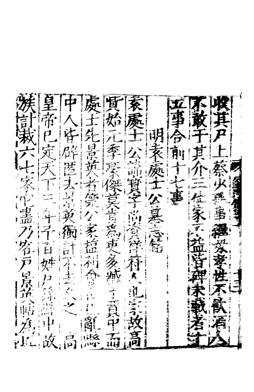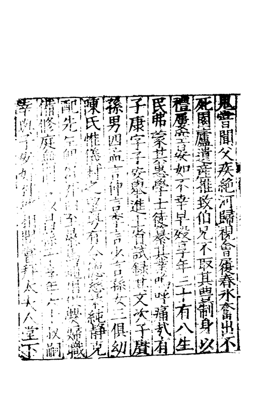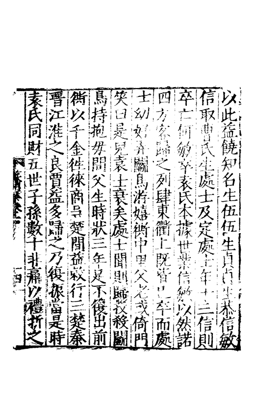 是受寵命日新寛樂令終懸車海濱自戎亂華莫元為甚騶魯榛蕪文教衰寢喪服五禮民莫以諗抑抑封君化行繇家道偽以誠作儉于奢鄉用折衷時尠有加奉姑惟仁友弟惟愛每思禄養而親不逮純孝永思疾用是廢乙酉之年蓋至京師何以朂子先民有詩先民有詩夙夜在公著之翰墨以飭汝躬臨危末命道莫先忠言發長逝遺憲無窮嗚呼哀哉于公駟馬功在活人丙吉不死報及其身云何封君背世