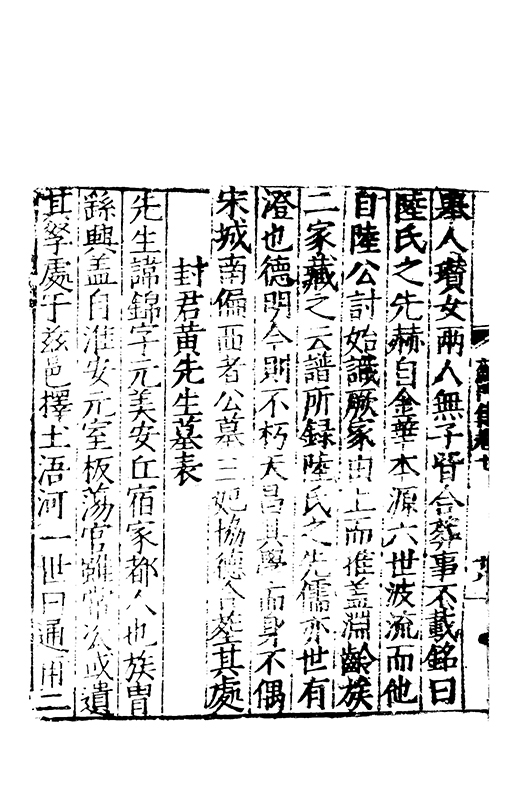 舉人瓚女兩人無子皆合葬事不載銘曰陸氏之先赫自金華本源六世波流而他自陸公討始識厥家由上而推蓋淵齡族二家藏之云譜所録陸氏之先儒亦世有澄也德明今則不朽天昌其學而身不偶宋城南偏西者公墓三妃協德合葬其處
