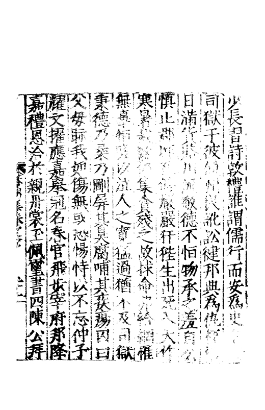 少長習詩敦禮誰謂儒行而安為史皇授司獄于彼饒州民訛訟徤邦典為仇桎梏日滿貨賂川流敬德不恒物承之羞自公慎止郡邸孔修嚴嚴犴狴生出死入天作寒暑烖盭仍集貪殘之故捄命弗給網罹無辜恒嗟以泣人之寛猛過猶不及司獄秉德乃柔乃剛屏其臭腐哺其疾瘍囚曰父母眎我如傷無或恐愓恃以不忘仲子耀文擢應嘉舉冠名春官飛歩宰府邦降嘉禮恩洽扵親丹裳玉佩璽書四陳公拜