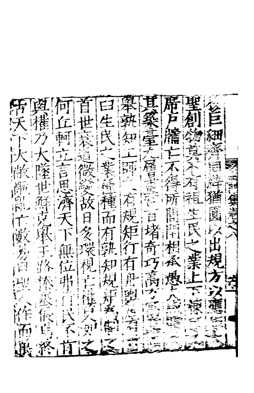 移巨細齊同辟猶圓以出規方以應矩大聖創物莫不有祖生民之業上下棟宇几席户牖亡不得所閭閈相承愚夫咸睹及其築臺九層畫宫百堵竒巧萬方寓意而舉孰知工師之有規矩行有舟輿居有杵臼生民之業種種而有孰知規矩為制之首世衰道微變故日多環視亡權莫如之何丘軻立言思濟天下無位弗行民不肯與權乃大墜世鮮克舉王路榛塞倀焉終古天下大敝禍亂無數易曰聖人作而萬