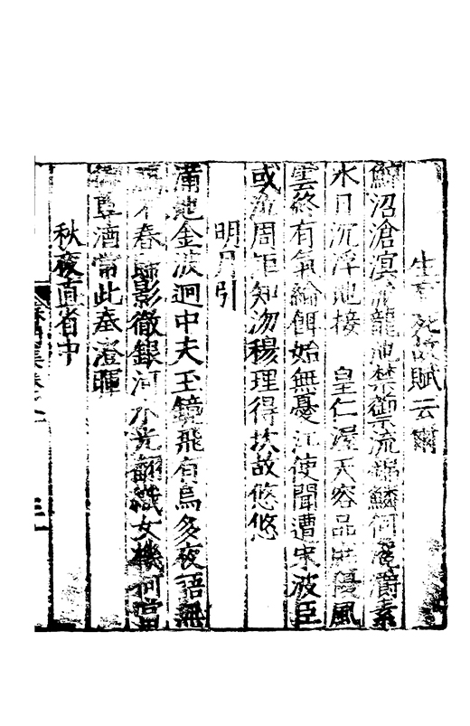鯨沼滄溟流龍池禁籞流錦鱗何瀺灂素水日沉浮地接 皇仁渥天容品庶優風雲終有氣綸餌始無憂江使聞遭宋波臣或泣周詎知沕穆理得坎故悠悠