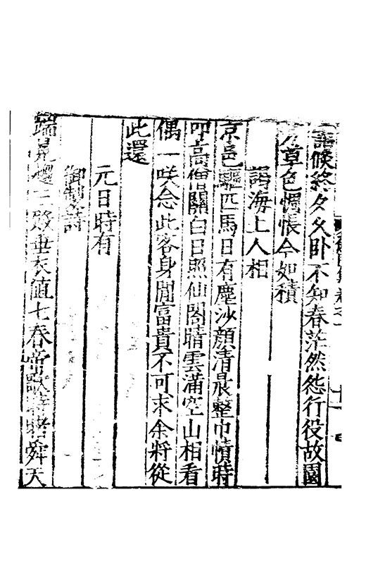 旦夕兹歲改蕭條旅思多雲物媚晴宇氣候属妍和崢嶸新陽至故景實蹉跎感時豈不懐二紀倐焉過栖身慚擇木望道嘆伐柯如匏吾自係匪玉孰為磨有髪日就長心短獨若何但云畢夙志唯力豈知他