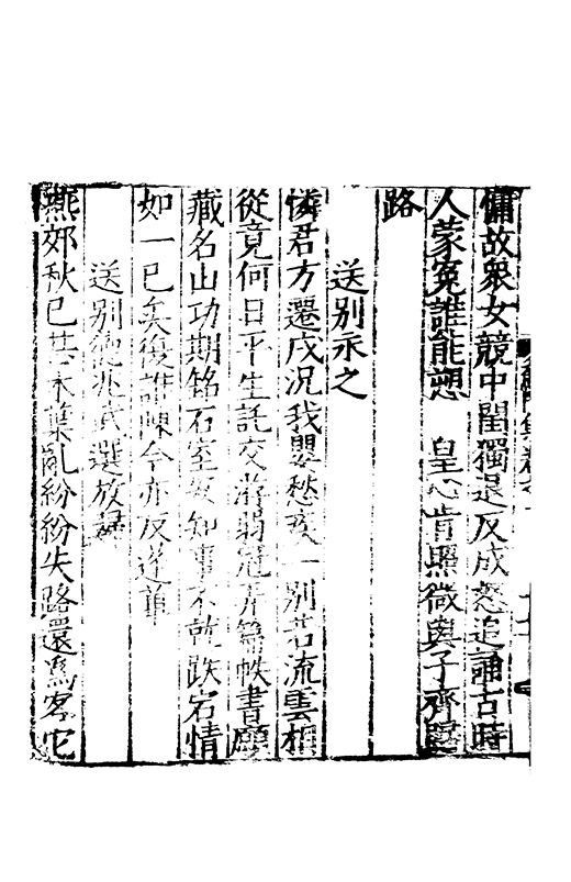 馳亳丘勞共家大河側一水連波濤壯齡竊邦譽拔足叅時髦吾子遂見知微才受虚褒傾蓋歘自值倒履趨相遭忘年當異代終日託同遨同遨詎幾時時變忽我撓詩人咏啜泣賢者憚餔糟送子今出居流言尚莫逃撫膺空踟蹰念别心鬱陶芝焚良有嘆膏在那無熬惜乏靈均辭為君綴離騷