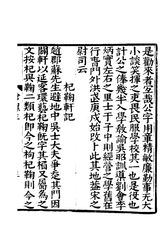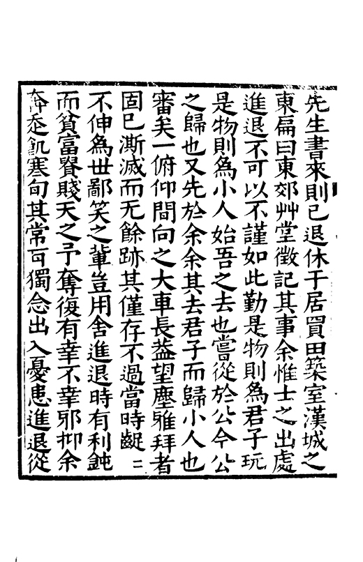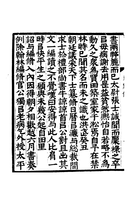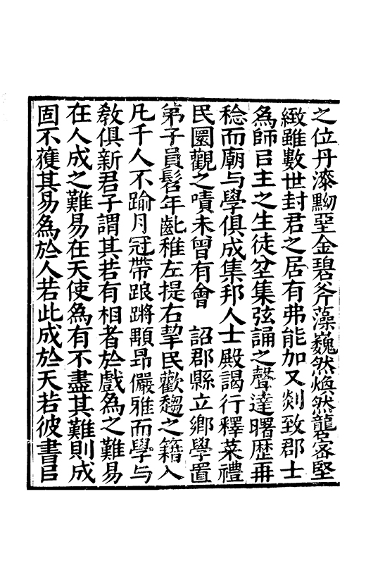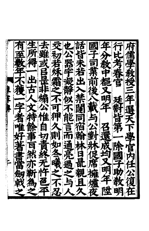 府儒學教授三年選天下學官內任公復在行比考春官廷對皆第一除國子助教明年分教中都又明年召還成均又明年陞國子司業前後八載與公對牀促席擁爐夜話皆未若出入禁闥同宿翰林日最親且久也公器宇凝靜似不能言而通亮過之與人交初若秌霜之不可狎久則如冬曦之不忍去雖或以是非煽公惟自切責終無忤色平生所得一出古人文特餘事耳然亦靳為之有至數年不獲一字者唯好著書當劔戟之