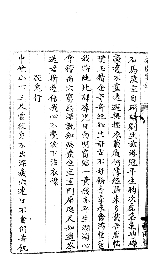 漁樵深林雜麋鹿讀書坐磐石□蒱向臯陸為感䝉莊