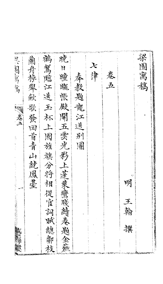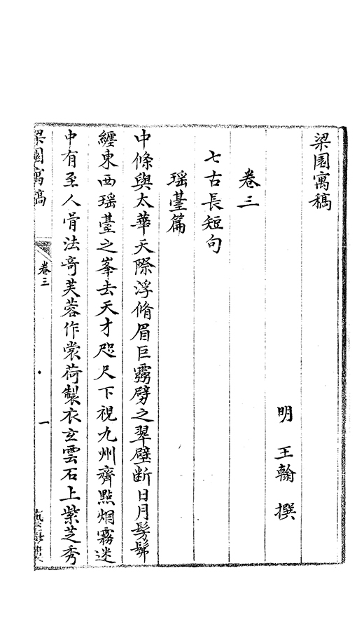 臣等謹案梁園寓稿九巻明王翰撰翰字時