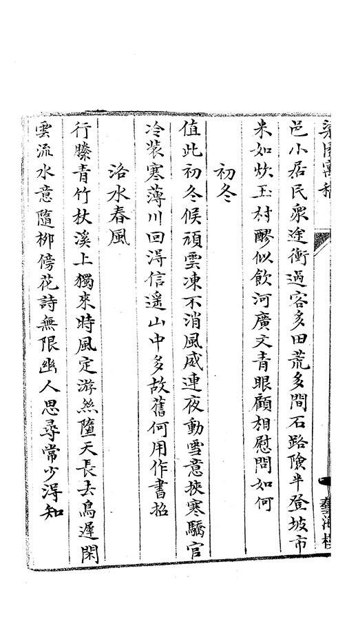 當戸峰巒畫帳開青斾曉誇新酒出玉蓑寒駕小舟來