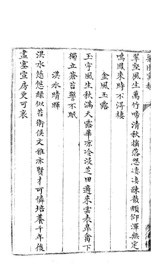 清風汎欄楯明月耿房帷夜永草蟲弔天長鴻雁悲容