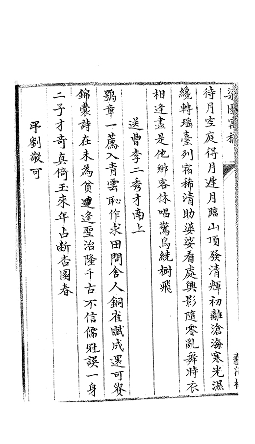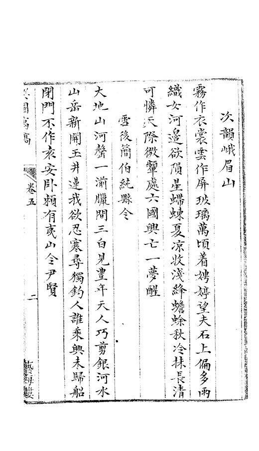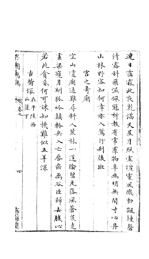一山雄峙太陽津絶頂翹翹廻出羣碧樹九秋含月色