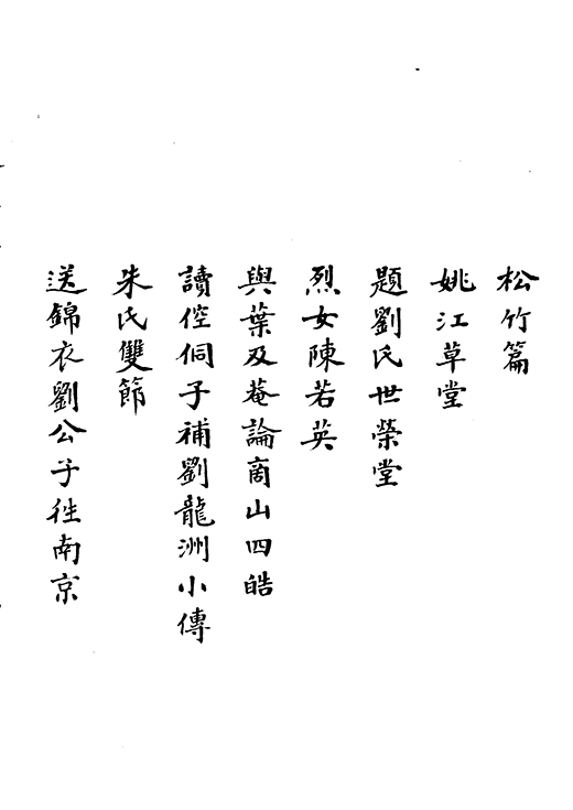 容臺仙老歲寒姿慣寫瀟湘玉萬枝近水煙梢微有影隔江雨葉遠含滋鳥聲多在黄陵廟草色遥連屈子祠别駕退公來看畫為君重詠五紽詩