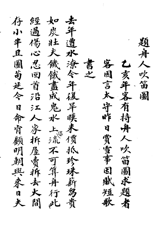 畫船撾鼓渡江沙江上來尋節婦家壽相自於鄰媪異鐵心頻聽族人誇早年薄命輕如紙末路榮名穏似車莫怪到門輕下拜要令田野辨龍蛇