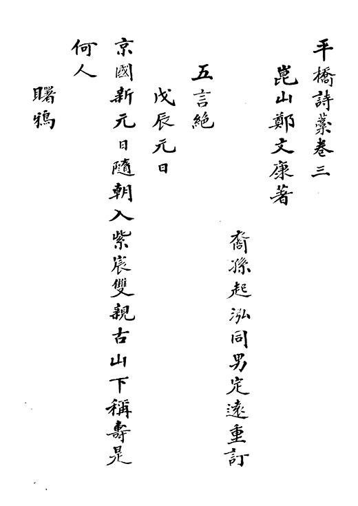 家居通徳舊儒門南渡衣冠十代孫闕里經書皆實行考亭章句盡真言犂牛曽見生騂犢良馬還期出大宛嵗月無情容易過莫教人笑改金根