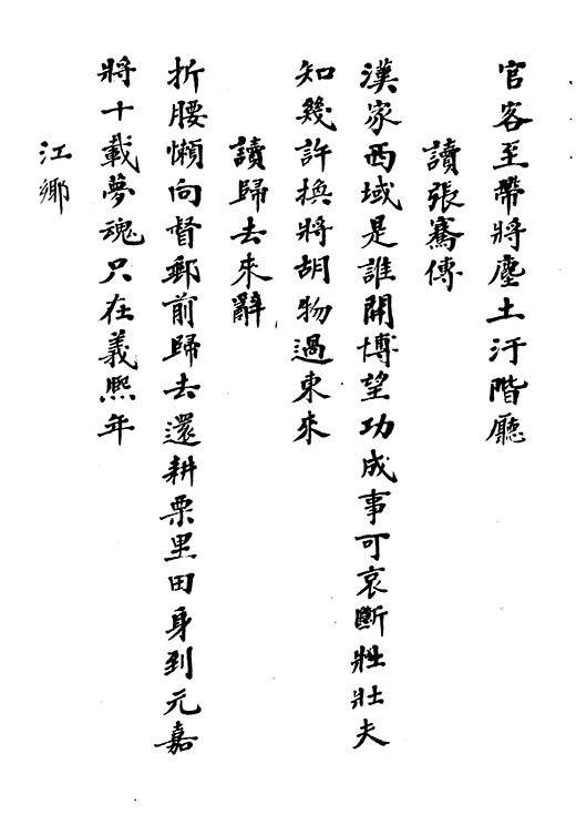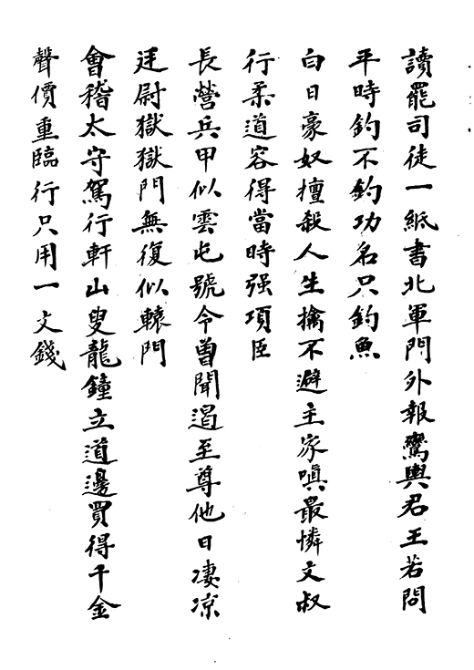 脱卻儒冠換吏巾十年辛苦向誰陳暫從新例司刀筆莫怨前程訴鬼神遇客謾言成朽木讀書還待作祥麟王嬙本是傾城色愛惜黄金自
