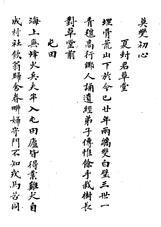 傳家物一巻農書教子方細栁髙牆江上宅野田荒草雨中羊東鄰西舍皆良善卻笑他州有互鄉