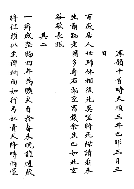 受病日久百體廢職獨一右眼了然無恙甲申初冬亦複變異黑眼上反直視不動醜惡日増無可救藥坐成短句聊遣悶懷