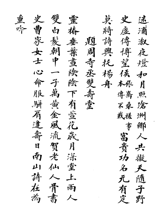 靈椿垂葉晝陰陰下有萱花歲月深堂上兩人雙白髪朝中一子萬黄金風流賀老仙人骨書史曹家女士心命服駢肩逢壽日南山詩在為重吟