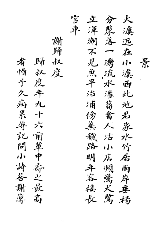 大澞近在小澞西此地君家水竹居兩岸垂楊分聚落一灣流水灌菑畬人沽小店頻驚犬鷺立渾潮不見魚早治浦傍蕪穢路明年容接長官車