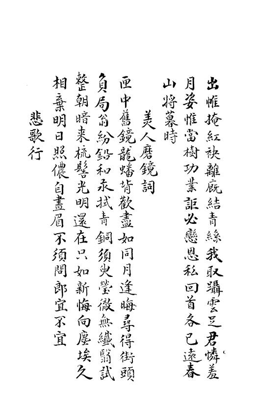 惻惻抱深隱靡靡踰崇丘凜凜歳欲徂役役車未休不辭車未休但傷歳莫留窮隂蔽九野徒旅同時憂豺虎當路啼猿猱出林游我飢雪作粮我寒又無裘徒思陽春日誰返羲和輈天時自有常淚下還復收