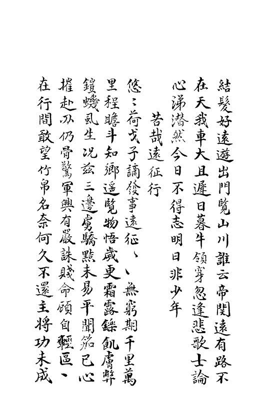結髮好遠遊出門覽山川誰云帝関遠有路不在天我車大且遲日暮牛領穿忽逢悲歌士論心涕潜然今日不得志明日非少年