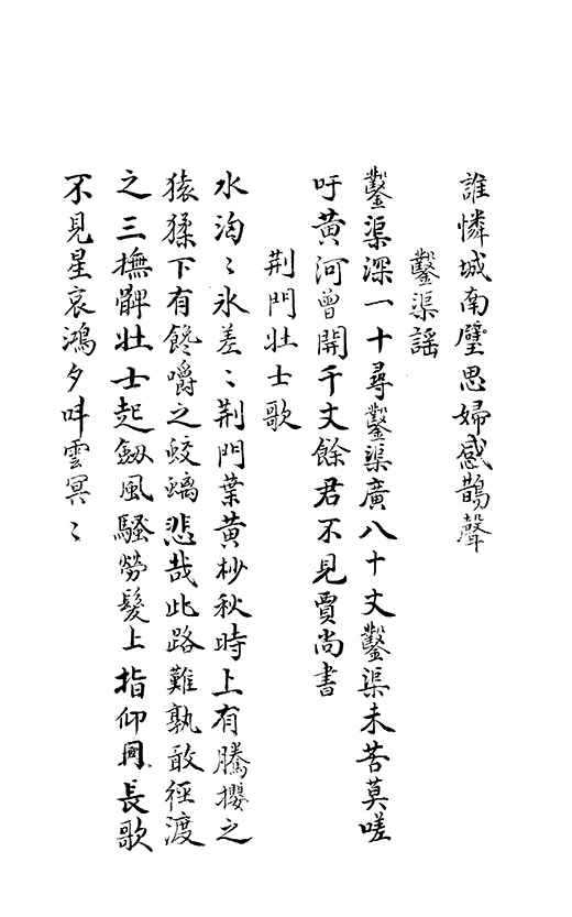 水洶洶氷差差荊門葉黃杪秋時上有騰攖之猿猱下有饞嚼之蛟螭悲哉此路難孰敢徑渡之三撫髀壯士起劒風騷勞髪上指仰天長歌不見星哀鴻夕叫雲冥冥