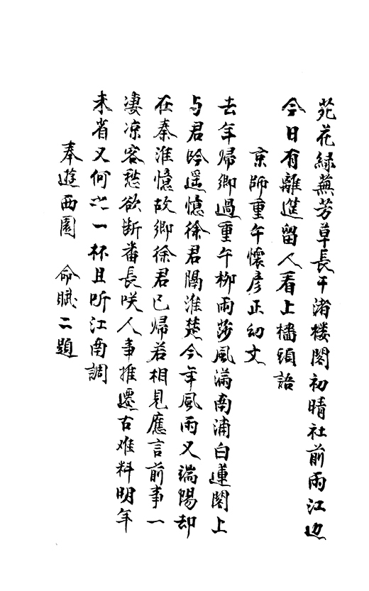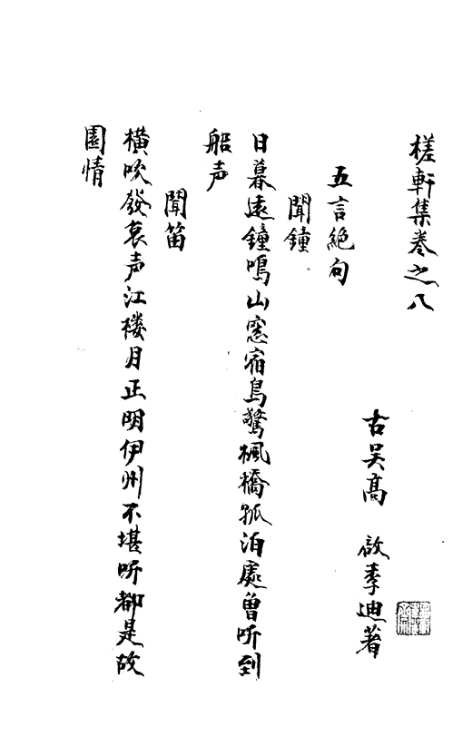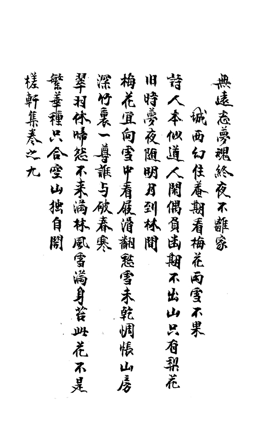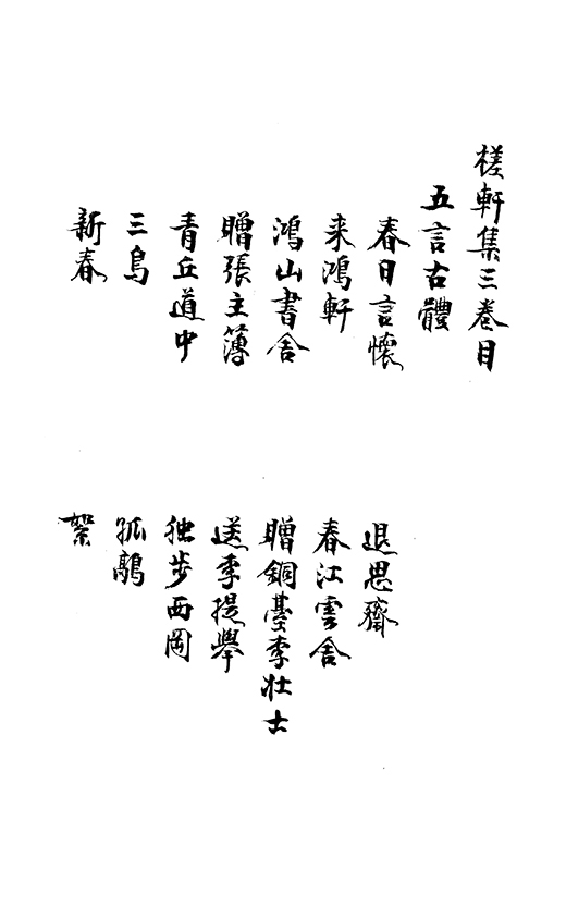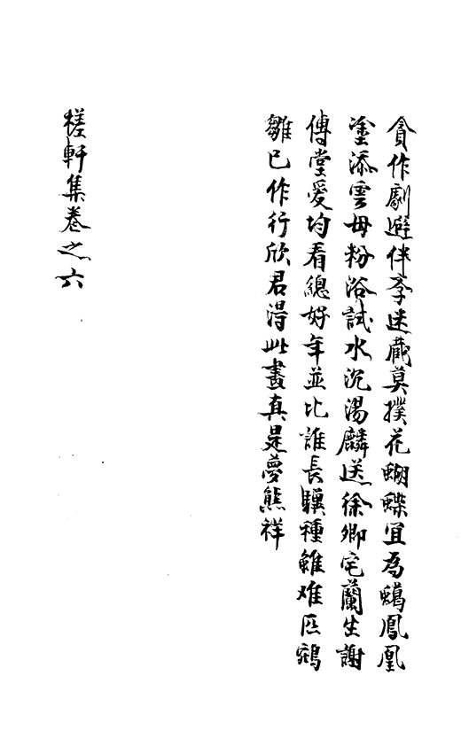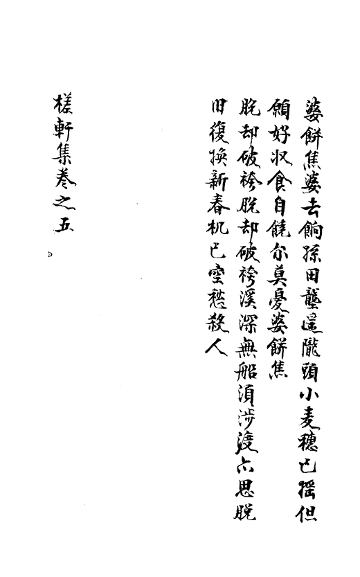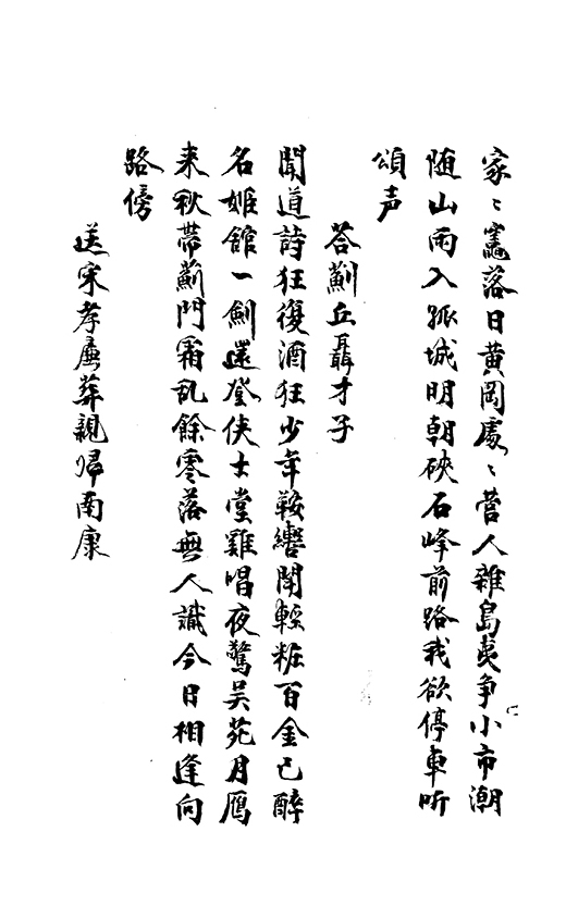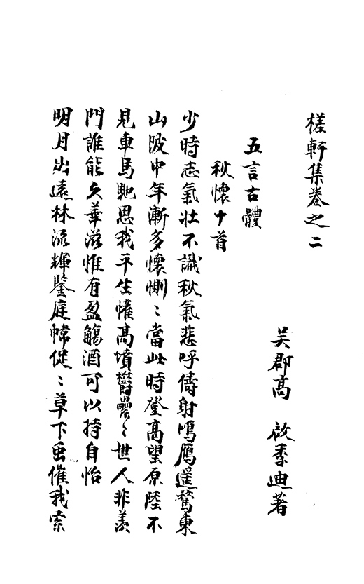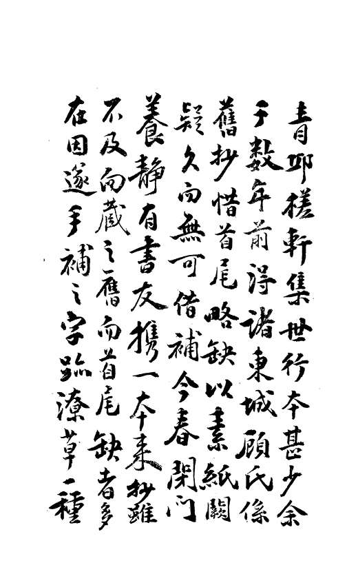 青邱槎軒集世行本甚少余于数年前得諸東城顧氏係舊抄惜首尾略缺以素紙闕疑久面無可借補今春閉門養静有書友携一本來抄雖不及向藏之舊而首尾缺者多在因遂手補之字□潦草一種