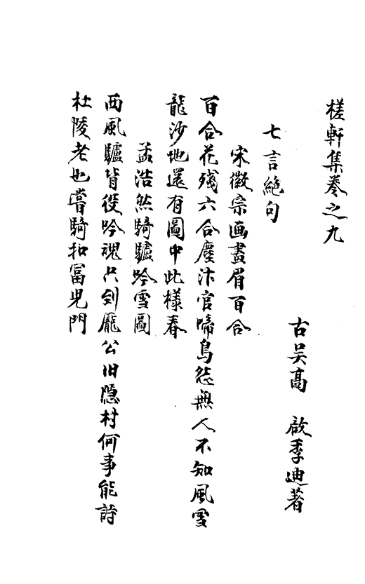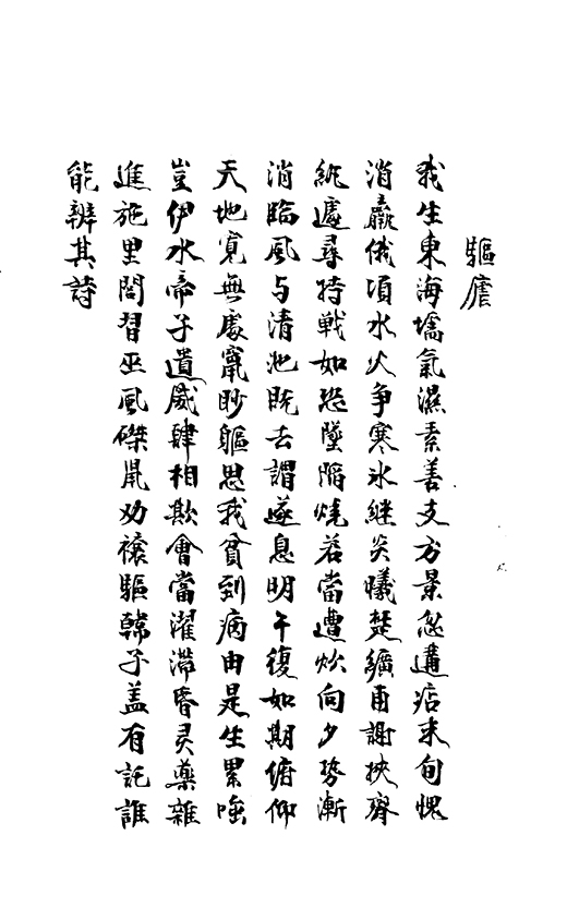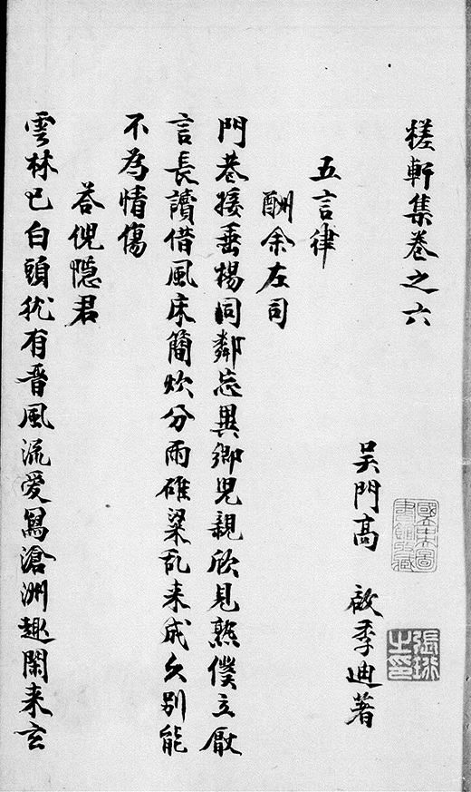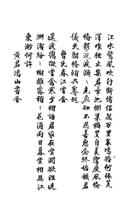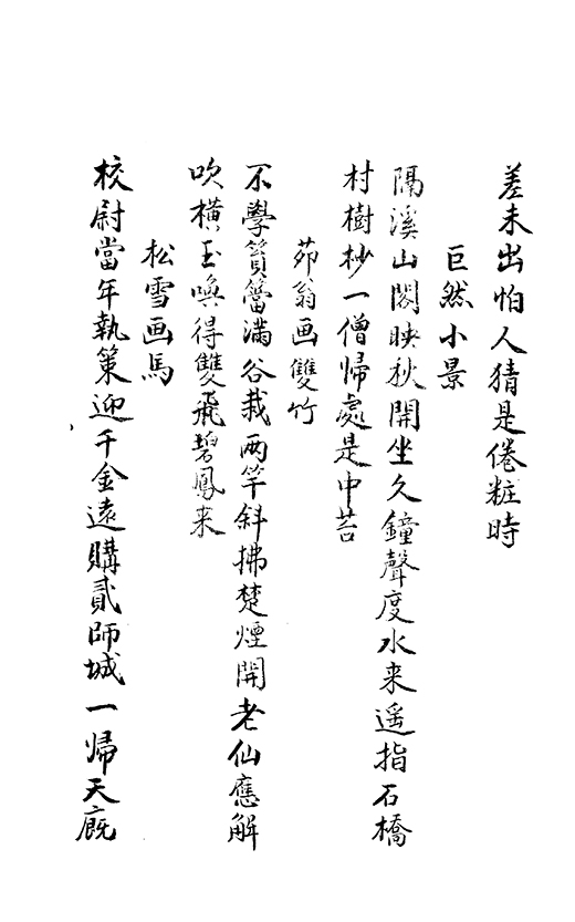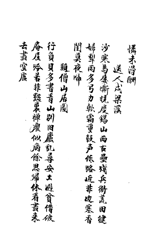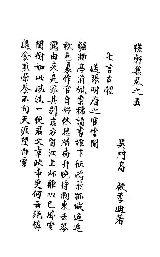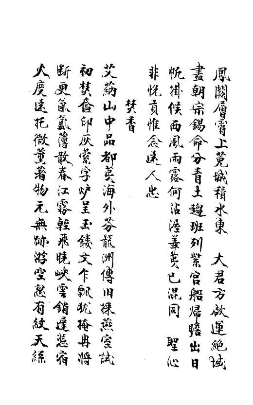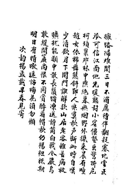 青邱槎軒集世行本甚少余于数年前得諸東城顧氏係舊抄惜首尾略缺以素紙闕疑久面無可借補今春閉門養静有書友携一本來抄雖不及向藏之舊而首尾缺者多在因遂手補之字□潦草一種