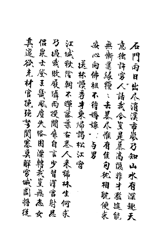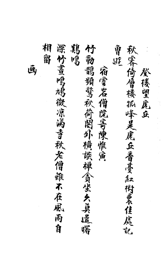 隔溪山閣映秋開坐久鐘聲度水來遥指石橋村樹杪一僧歸處是中台