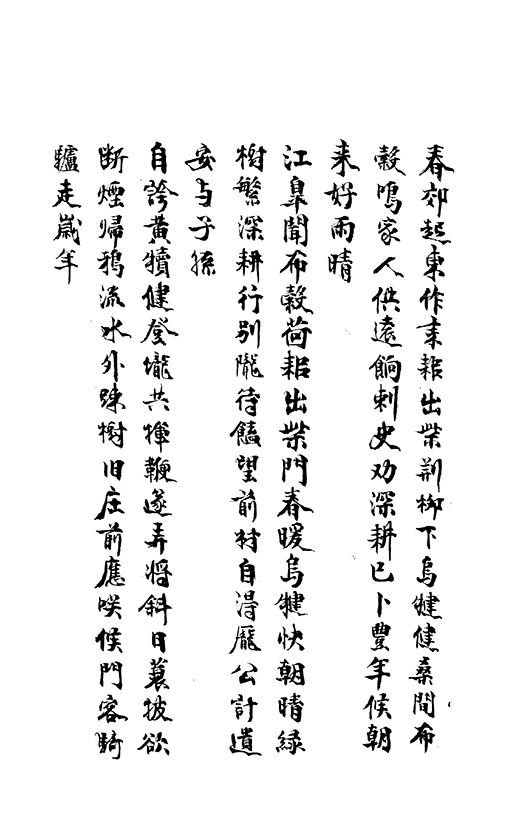 春初來柳條欲舒花未開曉日窓前鳥聲喜似報春來喚人起東風吹暖入烟痕綠遍江南幾千里去年春去憶愁人倏忽今年又見春但欲逢春醉盃酒不怕相思成白首