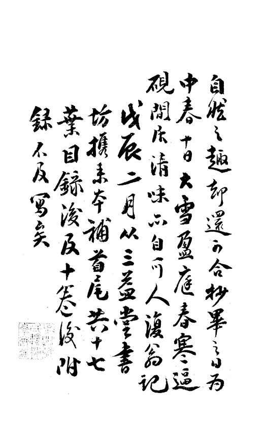 我辰二月从三益棠書坊携來本補首尾共十七葉目錄凌及十卷後附錄不及冩矣